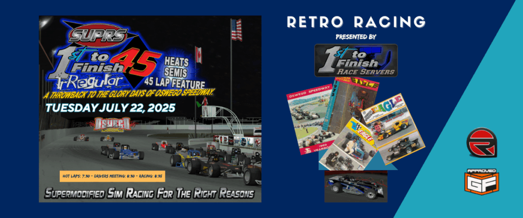 Online sim racers, gamers, and supermodified racing fans can all learn more about the original supermodified sim racing sanction by visiting www.SUPRS.net, “Liking” SUPRS on Facebook, Following @SUPRSOnline on Twitter, and Viewing SUPRS videos on YouTube. We’re also on Instagram @suprs_online, and don’t forget to check out our live streaming video throughout the season via our SUPRS LIVE! page and Twitch.