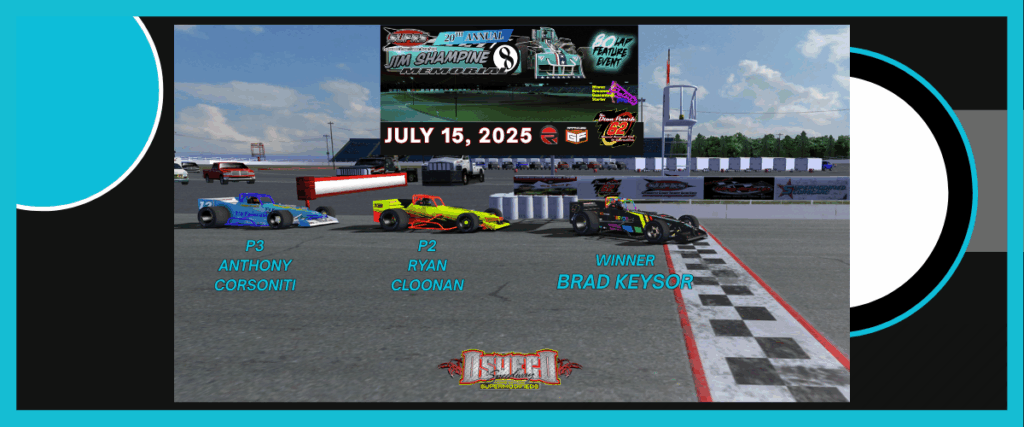 July 15, 2025 – Oswego, NY…Brad Keysor has joined the Supermodified Ultimate Pavement Racing Series, (SUPRS), Jim Shampine Memorial three-time winners club. Keysor joins Myles Maxon and Rob Warren in the elite group of supermodified sim racing drivers that have won the prestigious race three times and stands with Warren as the only drivers to have done so three years in a row.